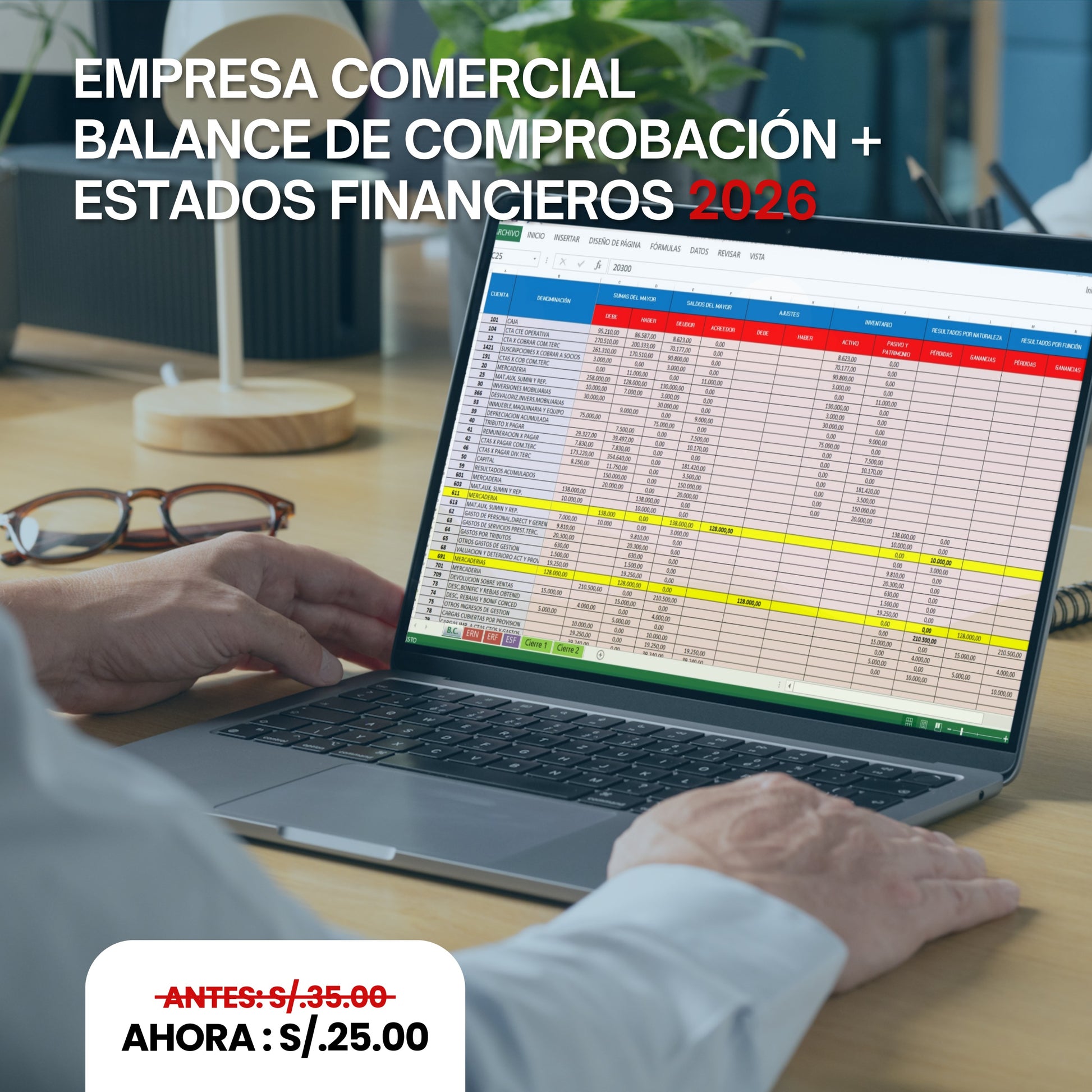 Excel de Balance de comprobación + Estado de Resultado por Naturaleza + Estado de Resultado por Función + Estado de situación financiera y asientos de cierre.